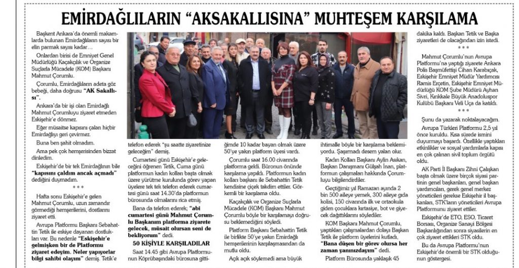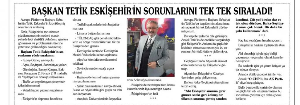 Avrupa Platformu ekibi olarak basında yer alan haberlerimiz..