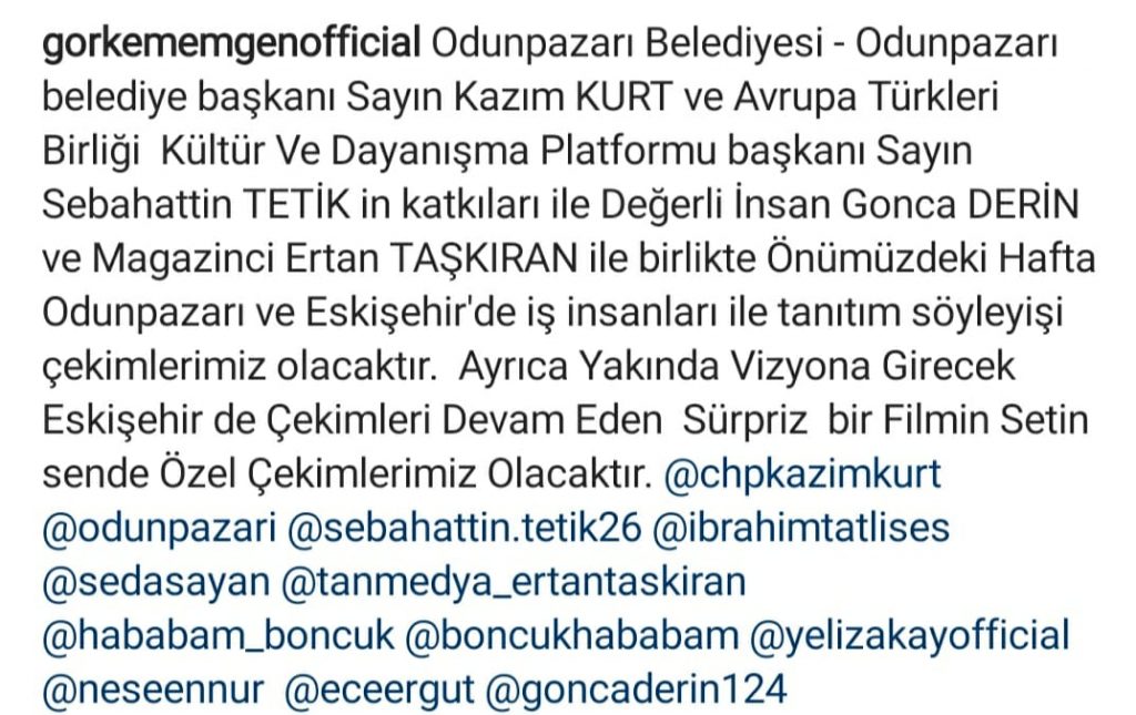 Odunpazarı Bld. Bşk. KAZIM KURT ve Platform Başkanımız SEBAHATTİN TETİK Eskişehir’imizi en güzel şekilde temsil ederek Gonca Derin ve Ertan Taşkıran ile güzel bir tanıtım yapacak. Tüm Avrupa ve Türkiye kanallarında yayınlanacaktır..