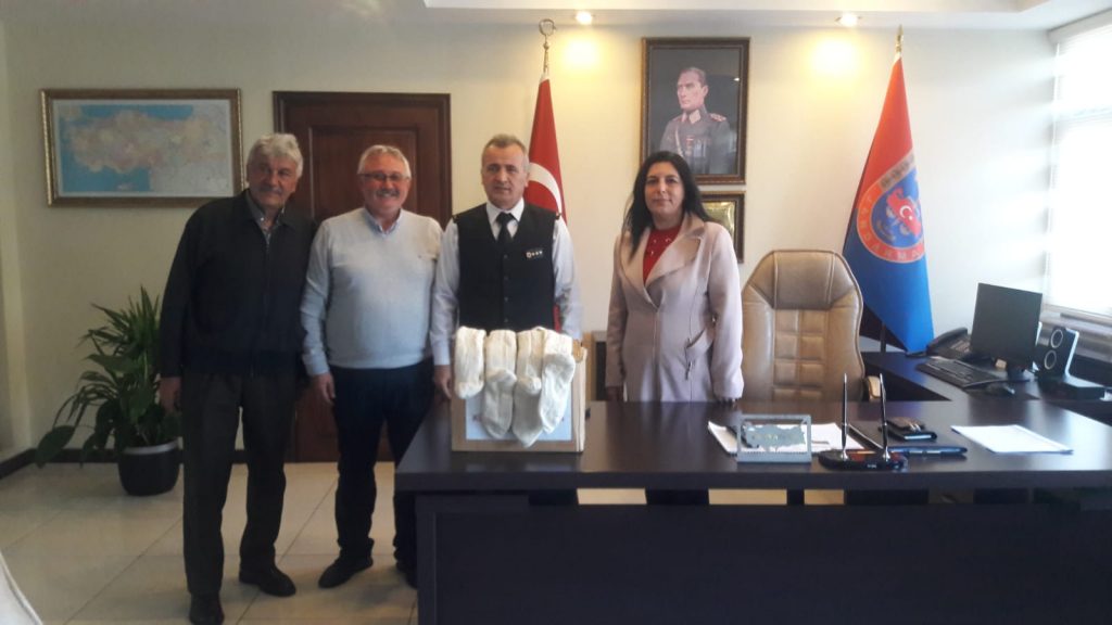 Fransa’dan askerlerimiz için yün çorap ören AYFER DEMİRCİ teyzemizin emanetlerini Avrupa Platformu olarak İl Alay Komutanı Albay ERCAN ATASOY Komutanımıza teslim ettik..