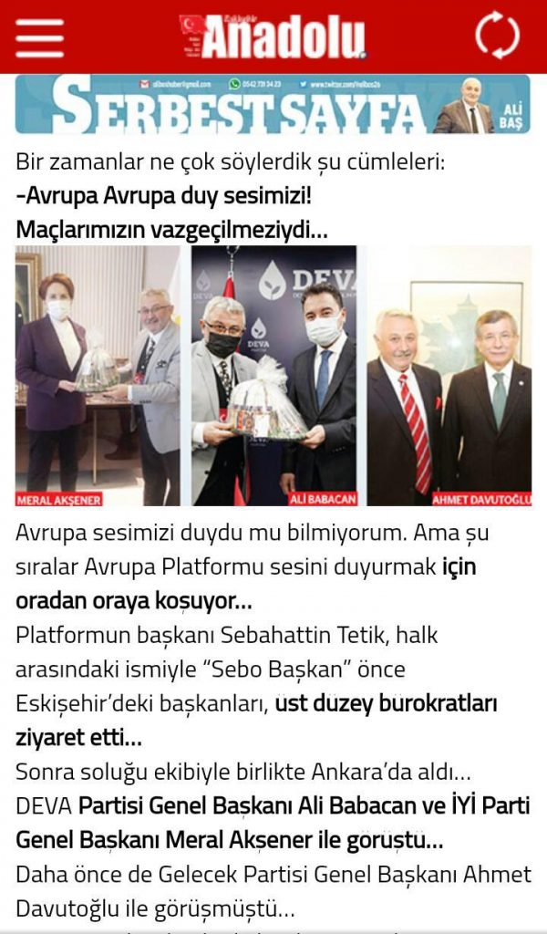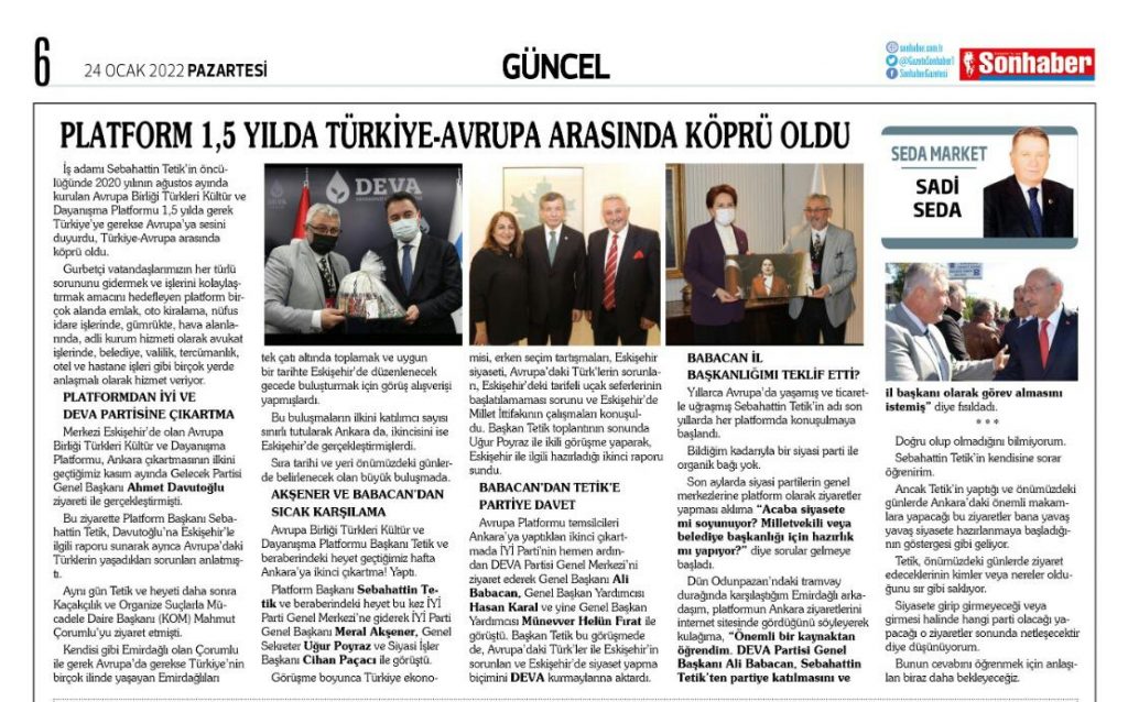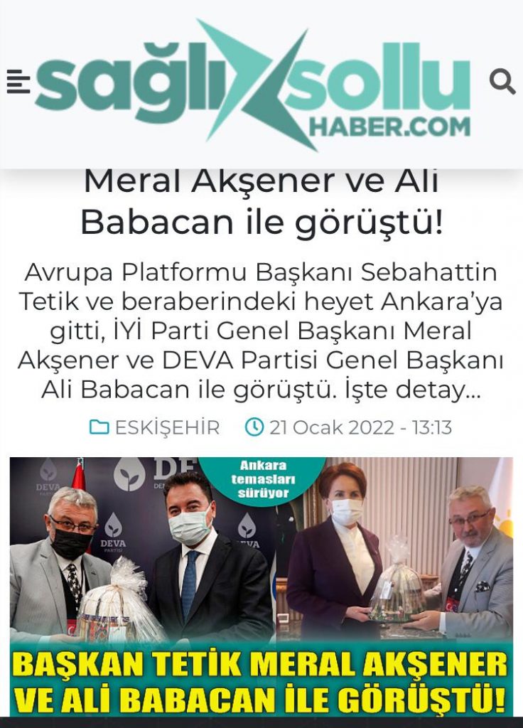 Ankara İYİ PARTİ ve DEVA PARTİSİ ziyaretlerimizin Türkiye ve Avrupa’ da ki basın haberleri…